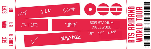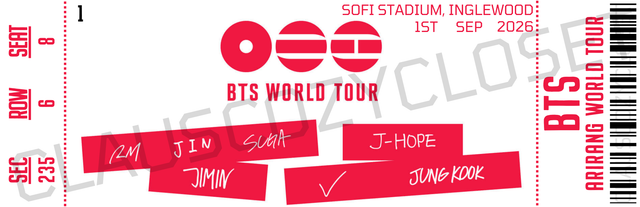 Custom Ticket: BTS - Arirang World Tour 2026 | 4 Designs
