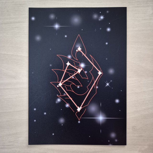 A6 sized print of the constellation of the character Arlecchino from the game Genshin Impact, in the Pyro vision colors. SALE ITEM: NO RESTOCKS!