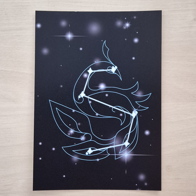 A6 sized print of the constellation of the character Kaeya from the game Genshin Impact, in the Cryo vision colors. SALE ITEM: NO RESTOCKS!
