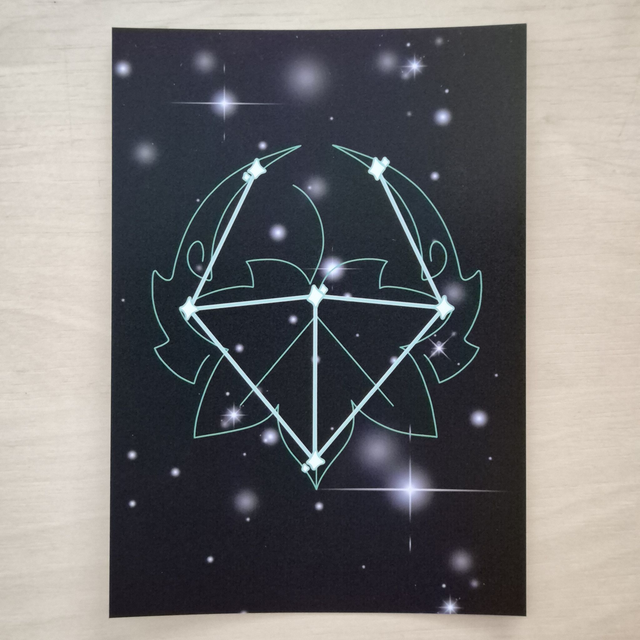 A6 sized print of the constellation of the character Kazuha from the game Genshin Impact, in the Anemo vision colors. SALE ITEM: NO RESTOCKS!