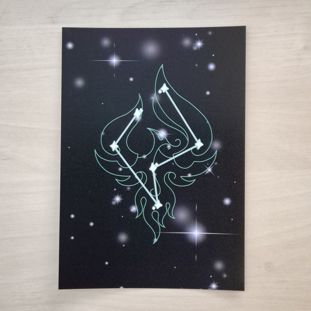 A6 sized print of the constellation of the character Xiao from the game Genshin Impact, in the Anemo vision colors. SALE ITEM: NO RESTOCKS!