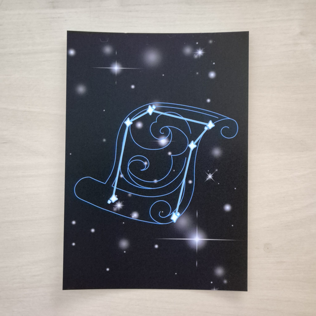 A6 sized print of the constellation of the character Xingqiu from the game Genshin Impact, in the Hydro vision colors. SALE ITEM: NO RESTOCKS!