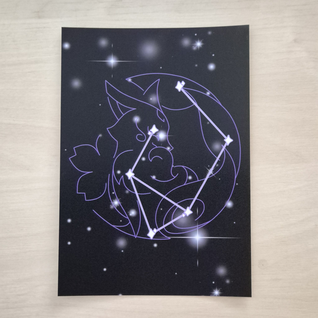 A6 sized print of the constellation of the character Yae from the game Genshin Impact, in the Electro vision colors. SALE ITEM: NO RESTOCKS!