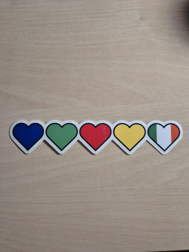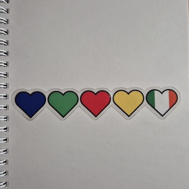 Vinyl sticker inspired on the microphone colors from the world famous boyband One Direction with in order: Louis, Harry, Liam, Zayn & Niall. Made with a clear border so it fits on any color background. Finished with a glossy topcoat for extra shine.